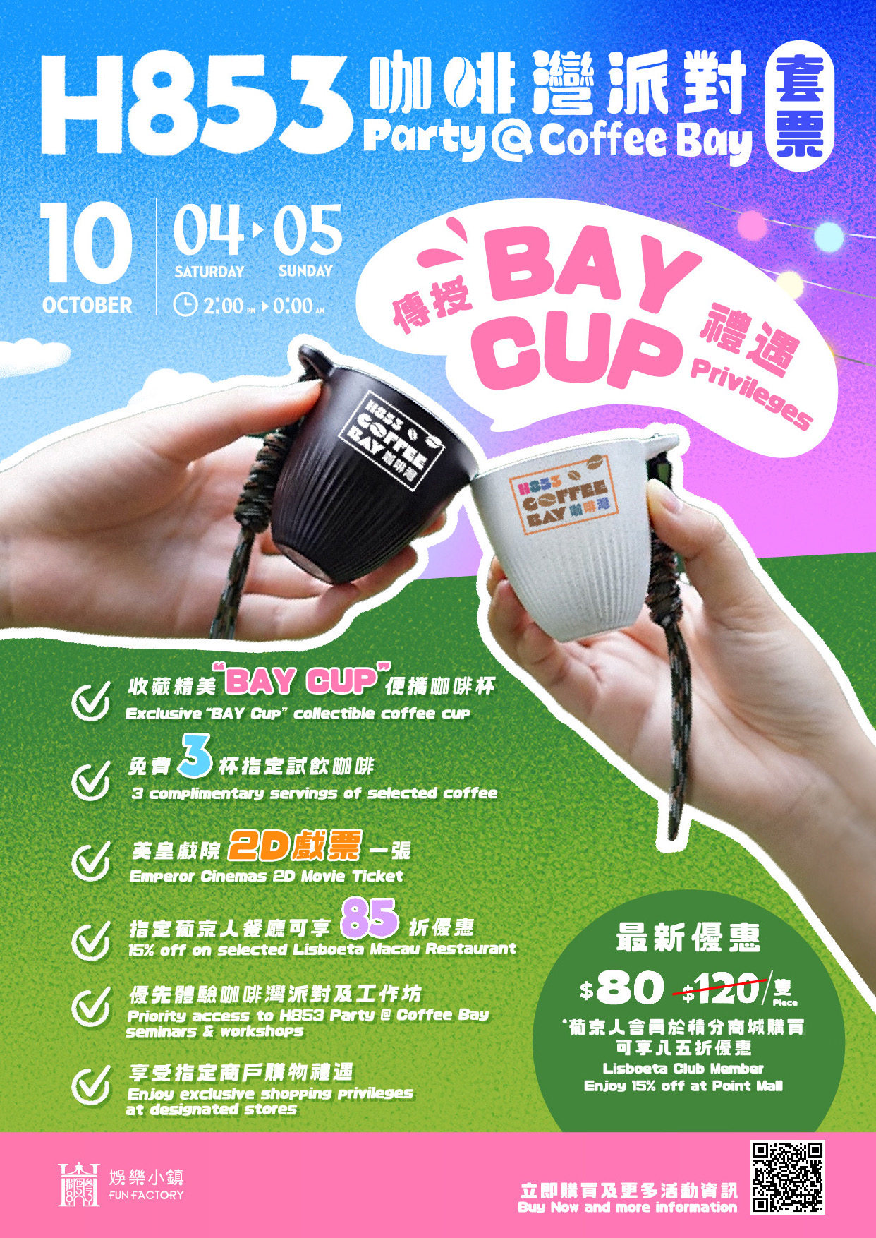 BAY Cup package can be redeemed in person from September 21, 2025 to October 5, 2025 at: H853 Fun Factory Mall Customer Service Counter (Operating hours: 10:00–22:00).